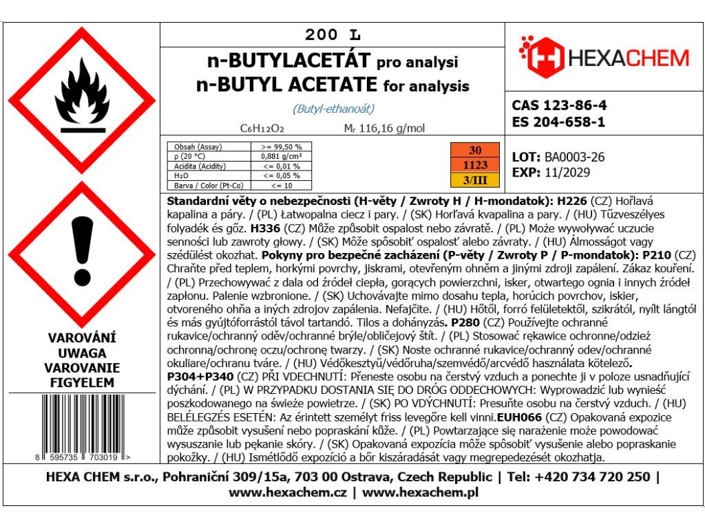 Nebezpečná látka: n-butyl-acetát (Index: 607-025-00-1; CAS: 123-86-4)