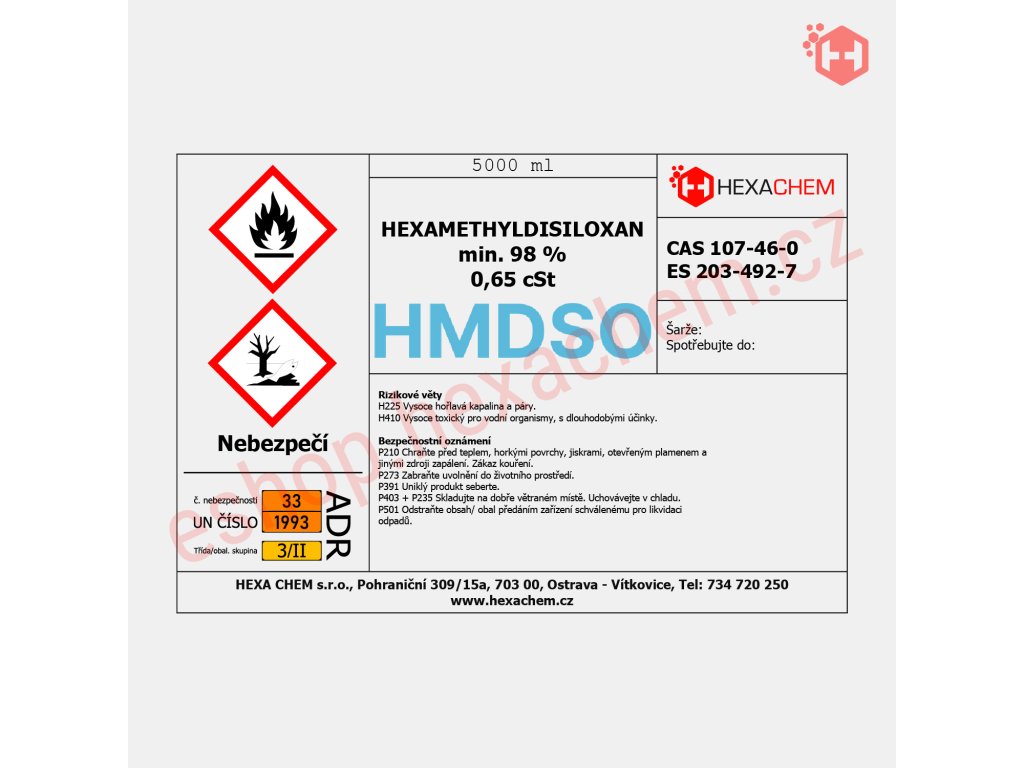 Bezpečnostní opatření: Ačkoli HMDSO není klasifikován jako vysoce toxická látka, je důležité zacházet s ním opatrně. Při manipulaci používejte ochranné rukavice a brýle a pracujte v dobře větraném prostředí. V případě kontaktu s kůží nebo očima opláchněte postiženou oblast velkým množstvím vody.