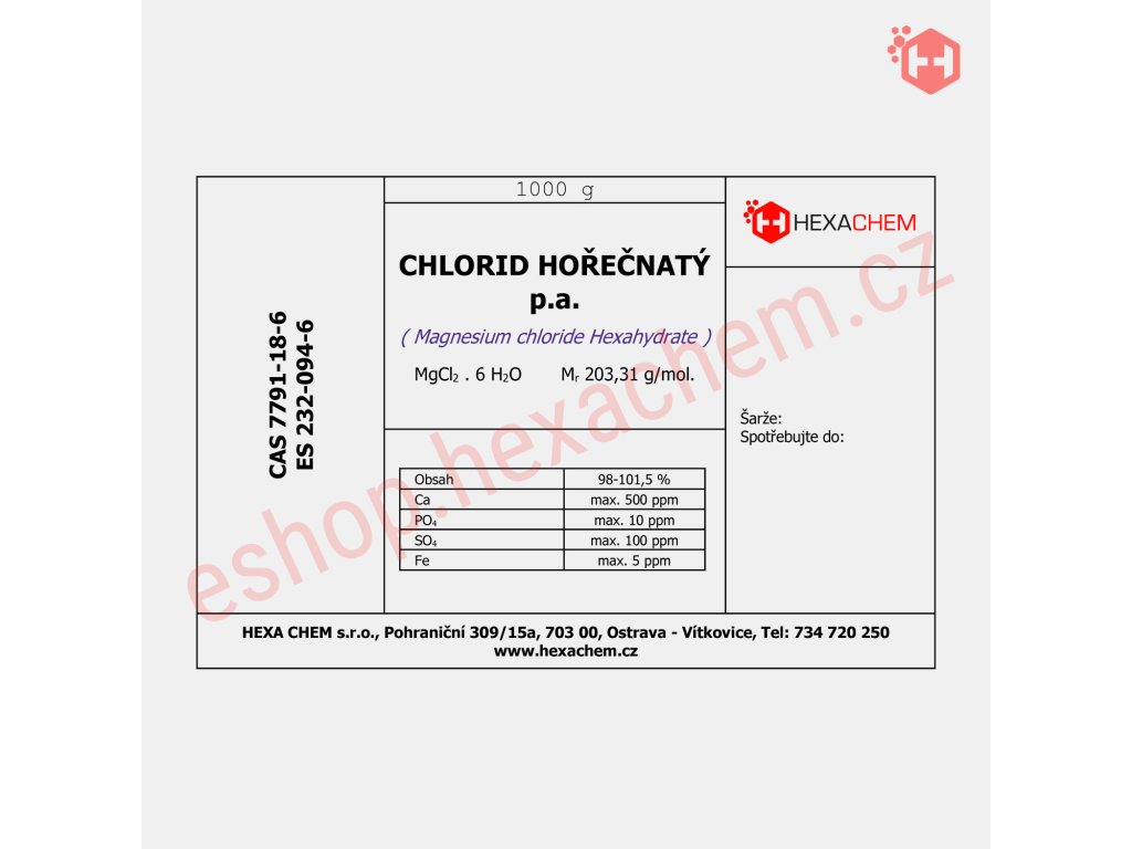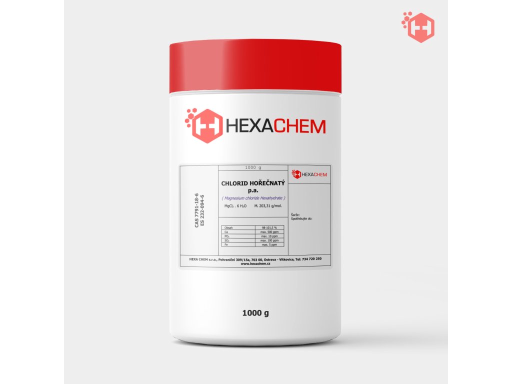 Chlorid hořečnatý (MgCl₂) je důležitá anorganická sloučenina, která se často používá v různých chemických aplikacích díky svým hydratačním vlastnostem. V laboratořích je využíván při přípravě analytických roztoků a v chemických syntézách. V průmyslu se používá při výrobě textilií, papíru, hasicích prostředků a jako katalyzátor v některých chemických procesech. V úpravě vody je chlorid hořečnatý využíván k regulaci tvrdosti vody a stabilizaci pH.